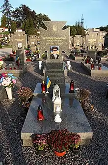 Похований на Личаківському цвинтарі у Львові, на полі почесних поховань № 76.