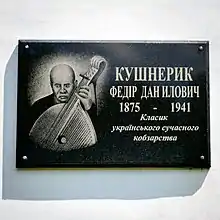 - Пам'ятна дошка кобзареві Ф. Д. Кушнерику