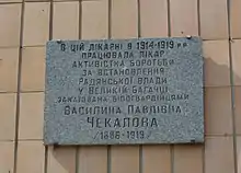 - Меморіальна дошка на честь лікаря В. П. Чекалової