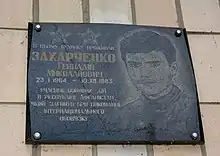 - Меморіальна дошка на честь учасника бойових дій в Афганістані Г. М. Захарченка