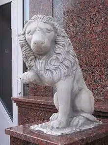 | Стіни її були пофарбовані в колір брудного м'яса. Але це власнику готелю здалося нудним. Він наказав покрити стіни модним тоді декадентським розписом - білими і ліловими ірисами і кокетливими головками жінок, що визирають з водяних лілій. |