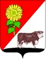 14 серпня 1996 р. рішенням 63 сесії селищної ради затверджено сучасний герб: щит скошений зліва червоним і срібним. У червоному полі зелений сонях із зеленим же листям і голівкою чорного кольору з золотими пелюстками; в срібному полі — коричневий бик, обернений вліво, що стоїть на землі. Автор — О. Киричок.