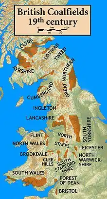 Інша відмінність передбачала географічну відстань; хоча Китай та Європа мали порівнянні технології видобутку, відстані між економічно розвиненими регіонами та вугільними родовищами сильно відрізнялися. Найбільші родовища вугілля в Китаї розташовані на північному заході, в межах досяжності китайського промислового ядра під час Північної династії Сун (960—1127). В XI столітті Китай розробив складні технології видобутку та використання вугілля для отримання енергії, що призвело до зростання видобутку заліза.[15] Зміна населення на південь між XII—XIV століттями призвела до появи нових центрів китайської промисловості, далеких від основних вугільних родовищ. Деякі невеликі родовища вугілля були доступними на місцевому рівні, хоча їх використання іноді ускладнювалось постановами уряду. На противагу цьому, Британія мала у своєму розпорядженні одні з найбільших родовищ вугілля в Європі [72] — усі з них на відносно компактному острові.