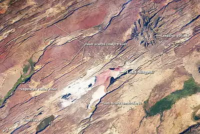 Озеро Магаді є найпівденнішим озером рифтової долини в Кенії, хоча північна частина озера Натрон в Танзанії розташована в Кенії.