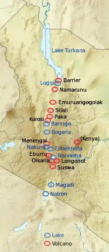 ![]() Озеро Богорія, одне з головних озер Кенійської озерної системи у Великій рифтовій долині. | |