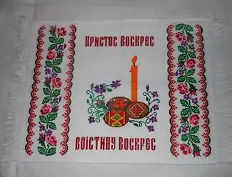 | Традиції | Великоднє привітання; освячення крашанок, пасок |