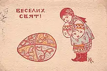 У народному побуті українців Великдень чітко утримував елементи язичницької весняної ритуалістики: випікання обрядового печива, фарбування яєць, ігри, танці та розваги молоді, вшанування предків, аграрно-магічні, очисні обряди тощо[16].