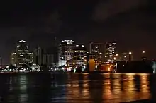 Південна Флорида має тропічний клімат, єдиний великий мегаполіс з 48 континентальних штатів, що підпадає під цю категорію. Більш конкретно, він, як правило, має клімат тропічних мусонів (кліматична класифікація Köppen, Am).[28] Метрополіс Південної Флориди бачить більшу частину дощу влітку (вологий сезон) і взимку досить сухий (посушливий сезон). Спекотний і вологий сезон вологи триває з травня по жовтень, коли щоденні грози та прохідні слабкі тропічні мінімуми приносять зливи пізнім днем. Сухий сезон часто починається в кінці жовтня і триває до кінця квітня. У розпал сухого сезону з лютого по квітень на півдні Флориди часто дуже сухо, і часто виникають пожежі та обмеження води. Часом холодні фронти можуть дійти до півдня Флориди та забезпечити невелику кількість опадів у посушливий сезон. Сезон ураганів багато в чому збігається з мокрим сезоном.[29]