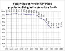 Деякі історики розрізняють першу велику міграцію (1916–1940), в якій близько 1,6 млн. осіб переселилися з переважно сільських районів півдня в північні промислові міста, і другу велику міграцію (1940–1970), яка почалася після Великої Депресії і принесла на північ і захід щонайменше 5 мільйонів людей, включаючи багатьох городян з міськими навичками[5].