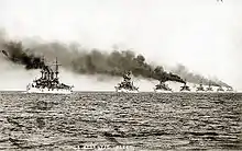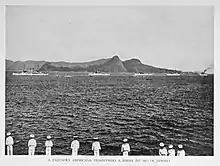- Склад «Великого Білого флоту»: пре-дредноути «Коннектикут», «Канзас», «Вермонт», «Луїзіана», «Джорджія», «Нью-Джерсі», «Род-Айленд», «Вірджинія», «Міннесота», «Мен», «Міссурі», «Огайо», «Алабама», «Іллінойс», «Кірсадж», «Кентуккі»; ескадрені міноносці «Гопкінс», «Стюарт», «Галл», «Тракстон», «Лоуренс», «Віппл», «Арет'юза»; допоміжні військові судна «Калгоа», «Гласіер», «Пантер», «Янктон», «Реліф».