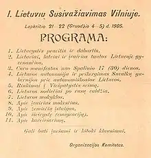 - Priedas Nr. 9 Lietuvių suvažiavimo Vilniuje nutarimai (лит.). 5 грудня 1905. Архів оригіналу за 27 вересня 2007. Процитовано 23 вересня 2021.