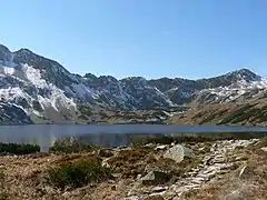 — чорний з над Великого Ставу на Козі Вєрх. Час переходу: 1:30 год, ↓ 1 год.