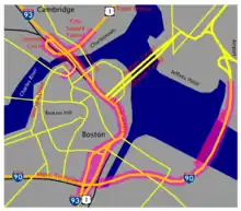 Великий бостонський тунель (англ. Central Artery/Third Harbor Tunnel Project; неоф. англ. Big Dig - Велика траншея) - 8-смугова магістраль, найдорожчий проект в історії будівництва США.