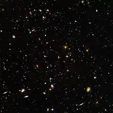 - Розбігання галактик за законом Габбла, яке вимірюється на основі червоного зсуву спектральних ліній внаслідок ефекту Доплера.