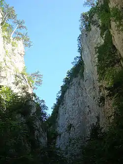 Облазивши масив Бойка, скеляста поверхня якого нічим не відрізнялася від Ай-Петринської, форпостом якої він є, ми вирішили йти прямо на Ай-Петрі… Прокрокувавши з півгодини, ми раптом опинилися на краю бездонної ущелини, що простягнулася паралельно Яйлі. Заглянувши із завмиранням серця в безодню, що перегородила нам шлях, ми побачили, що на дні тече річка. Протилежний край ущелини був також абсолютно прямовисний, як і той, на якому ми стояли. По прямій до нього було не більше 200—250 м. Через безодню, що нас розділяє, зі свистом проносилися білочереві стрижі.