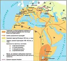 «Великий Стрибок Уперед» відповідає періоду, коли відбулося поширення кроманьйонців майже усією територією Євразії. Згодом також було заселено Австралію та Нову Гвінею, це відбулося близько 40 тис років тому, про що свідчить радіовуглецевий аналіз тамтешніх стоянок. Невдовзі після початкового прибуття люди заселили весь континентякий?, пристосувавшись до всього спектру його довкіль - від дощового тропічного лісу та новогвінейських верхогір'їв до посушливого центру Австралії та її вологого південно-східного кутка[1].