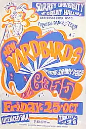 | Афіша виступу гурту (під назвою New Yardbirds) в університеті Саррею. | ||