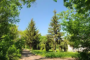 Триповерховий палац не зберігся. Від садиби лишилося кілька напівзруйнованих будівель 18—19 ст. (млин, майстерня, будинок для гостей). На території парку розташоване давньоруське родовище (1—11 ст.).[4]