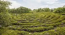 Діаметр лабіринтів змінюється від 3 до 25 м, каміння має діаметр 30-40 см. Смуги лабіринту складені з рядів валунів, при цьому стрічки закручені спіраллю. Часто спіралі дві, при цьому вони сходяться в центрі. Товщина спіралей різна, що залежить від розмірів каміння. Кінці спіралей розширені. Вхід до лабіринту, як правило, з південного боку, але зустрічаються і з південного заходу, сходу чи заходу. Лабіринти поділяються на 5 типів, але кожен має лише один вхід, який служить також і виходом.