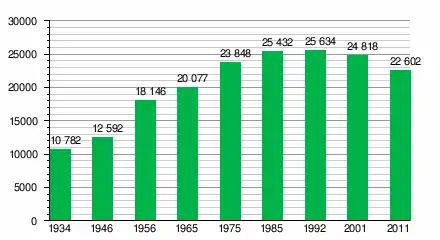 За даними перепису населення 2011 року у місті проживали 22 602 особи.