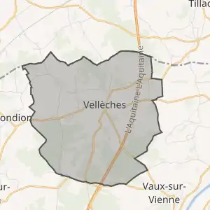 - Розташування муніципалітету Веллеш на мапі Франції та сусідні муніципалітети