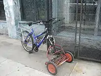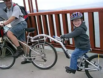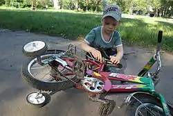- Велосипеди зі з'ємними приставними колесиками по боках призначені для навчання дитини їзді на двох колесах. Вони сприяють формуванню правильної посадки й виробленню відчуття рівноваги. Такі велосипеди розраховані на вік дитини від 3 до 7 років. Вага велосипедів з 12 спицями 7-9 кг; відстань між осями коліс — 650—700 мм; відстань від землі до сідла — близько 600 мм. Шини, як правило, широкі: 1,9-2,5" — для покращення прохідності і стійкості; кермо і сідло регулюються по висоті; задні колеса комплектуються гальмівною або безгальмівною втулками.