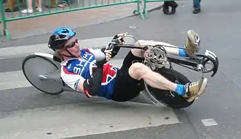 Лежачий велосипед дозволяє велосипедисту їхати напівлежачи чи лежачи на спині, в рідкісних випадках — на животі. Частина лежачих велосипедів — двоколісні, частина — триколісні. Лежачі велосипеди значно швидші від звичайних завдяки аеродинаміці, і тому не допускаються на змагання. (Є спеціальні змагання для лежачих велосипедів.) На 2004 рік, годинний рекорд для лежачих велосипедів — 84 км 215 м, а для звичайних — 49 км 441 м. Вперше лежачий велосипед використано на змаганнях у 1933 році, в 1938 році їх заборонили у звичайних велоперегонах. Іншими перевагами лежачих велосипедів є комфорт і відсутність навантаження на спину. Недоліками є велика вага і розміри, висока вартість, повільний поворот і важча їзда вгору (велосипедист не може встати на педалі, щоб надавити на них масою тіла). Є і тандемні лежачі велосипеди (один велосипедист напівлежить, інший сидить).