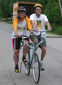 В 1895—1905 роках вважалося шиком прогулятися на парному велосипеді[13]. Двоє друзів сиділи на двоколісному велосипеді пліч-о-пліч. Коли колеса виставили в одну лінію — такий варіант велосипеда обмилував спорт: він розвивав високу швидкість, бо опір повітря лишався тим же, а зусилля на ведучу зірочку зростало прямо пропорційно кількості перегонників (йдеться про двомісні перегонові тандеми). В 1900-их роках спортсмени змагалися на 3-, 4-, 5- і 6-місних машинах[13].