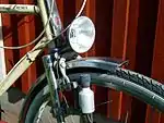 - Пляшковий динамо прикріплюється до сидіння або вилки і обертається маленьким колесом, що стикається з боковиною шини. Вони легше модернізуються, ніж динамо втулка, але схильні до ковзання, особливо у вологих умовах.