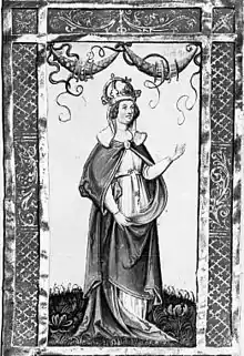 - Юдит (бл. 805 — 19 або 23 квітня 843); чоловік: з лютого 819 Людовік I Благочестивий (778 — 20 червня 840), король Аквітанії 781—814, король франків та імператор Заходу з 814