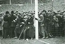 Перший фінал на «Вемблі» викликав неймовірний ажіотаж, і натовп глядачів ринув на стадіон, значно перевищивши його проектну місткість. Маса людей заповнила трибуни, після чого люди почали товпитися у просторі перед футбольним полем й на самому ігровому майданчику. На стадіон було уведено кінну поліцію (один з поліціянтів був верхи на коні світлого забарвлення, ставши одним з найяскравіших символів дня) з метою розчищення футбольного поля від натовпу, що насідав. Матч було відкладено на 45 хвилин, так як багато людей стояли на футбольному полі. «Фінал білого коня» став наймасовішим (за відвідуваністю) спортивним заходом у світі, і у найближчому майбутньому малоймовірно, що цей рекорд буде побитий. Завдяки зусиллям кінної поліції футбольне поле було очищено від глядачів і матч відбувся. Новий пішохідний міст, що вів від залізничної станції до нового «Вемблі», був названий «мостом білого коня» (англ. White Horse Bridge)