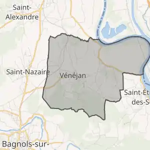- Розташування муніципалітету Венежан на мапі Франції та сусідні муніципалітети
