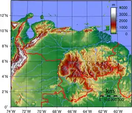 Венесуела — країна гір, рівнин і лісів. Основні природні райони: гірська область Анд, западина Маракайбо, Льянос і Гвіанське плоскогір'я. Гори Анди й озеро Маракайбо на північному заході, рівнини в центрі, дельта річки Оріноко на сході, Гаянська височина на південному сході. Його географія дає йому велике різноманіття природних ресурсів, головним чином енергії та корисних копалин, а також видів та екосистем.