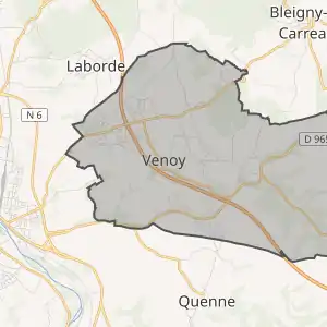 - Розташування муніципалітету Венуа на мапі Франції та сусідні муніципалітети