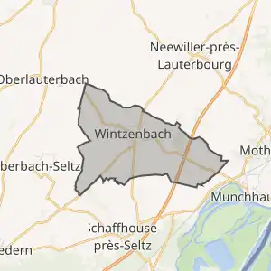 Муніципалітет розташований на відстані[2] близько 420 км на схід від Парижа, 50 км на північний схід від Страсбура.