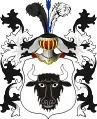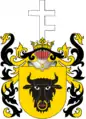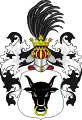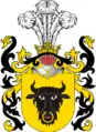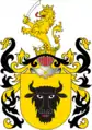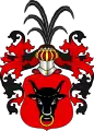 Клейнод — над верхом з короною половина золотого лева з мечем в правій лапі.