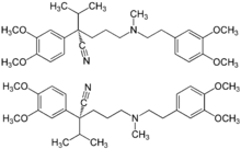 | (RS)-2-(3,4-dimethoxyphenyl)-5-[2-(3,4- dimethoxyphenyl)ethyl-methyl-amino] -2-(1-methylethyl)pentanenitrile | |