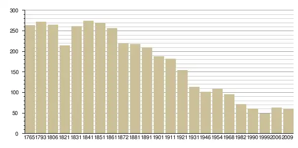 Динаміка населення (Baratier, Duby & Hildesheimer pour l’Ancien Régime ; Insee[3], EHESS[4] pour les chiffres issus des recensements légaux ):