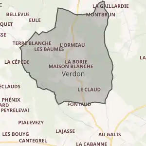 - Розташування муніципалітету Вердон на мапі Франції та сусідні муніципалітети