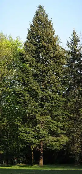 В парку вирощені поодиноко чи біогрупами (3-5 особин) дерева сосни звичайної і австрійської, ялини європейської і колючої, псевдотсуги Мензіса і модрини європейської. Особливою декоративністю відзначається псевдотсуга Мензіса (група з 6 дерев). У неї блискучі зелені, зверху жолобчасті хвоїнки, довжиною 15-25 мм. Знизу хвоїнки розташовані дві білуваті смужки. Шишки великі (до 7-10 см завдовжки). Покривні луски мають загострену лопать і виступають над насіннєвими. Шишки на деревах виростають щороку, що є свідченням доброї адаптації виду на Сумщині. Крім цих видів хвойних дерев, при розбудові парку використали ясен звичайний і дуб звичайний, в'яз гладкий і березу повислу, липу серцелисту і широколисту, клени гостролистий і цукровий, робінію звичайний тощо. В заплаві розташоване озерце площею близько 1 га. Невелику площу в заплаві займають угруповання вільхи. Тут також можна зустріти поодинокі великі дерева верби білої і в'язу гладкого, тополі білої і тополі чорної.