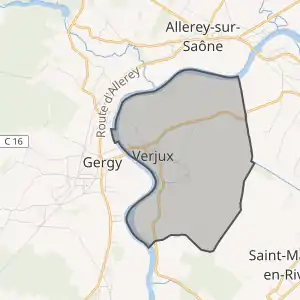 - Розташування муніципалітету Вержу на мапі Франції та сусідні муніципалітети