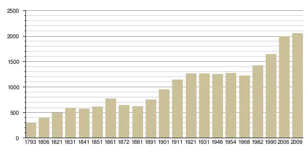 Динаміка населення (base Cassini de l'EHESS pour les nombres retenus jusque 1962[3], base Insee à partir de 1968 (population sans doubles comptes puis population municipale à partir de 2006)[4] · [5] ):