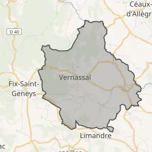 - Розташування муніципалітету Вернассаль на мапі Франції та сусідні муніципалітети