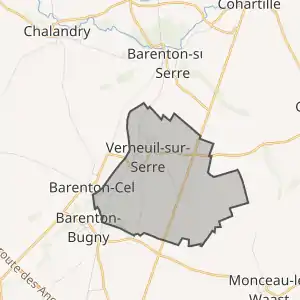 - Розташування муніципалітету Верней-сюр-Серр на мапі Франції та сусідні муніципалітети