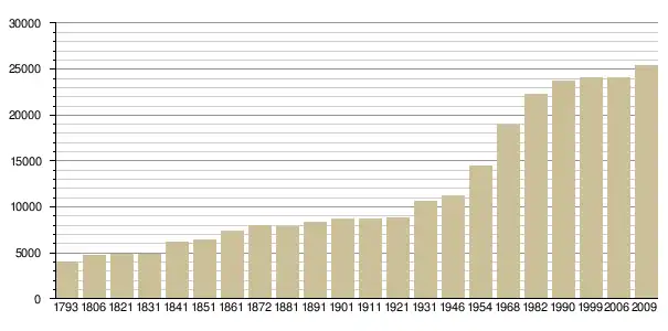 Динаміка населення (base Cassini de l'EHESS pour les nombres retenus jusqu'en 1962[4], base Insee à partir de 1968 (population sans doubles comptes puis population municipale à partir de 2006)[5] · [6] ):