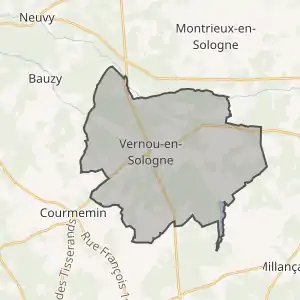 - Розташування муніципалітету Верну-ан-Солонь на мапі Франції та сусідні муніципалітети