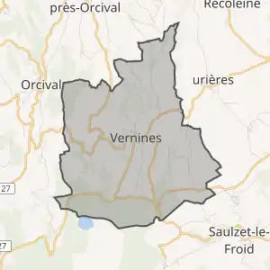 - Розташування муніципалітету Вернін на мапі Франції та сусідні муніципалітети