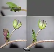 плід (внизу праворуч з видаленими чашолистками)