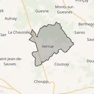 - Розташування муніципалітету Веррю на мапі Франції та сусідні муніципалітети