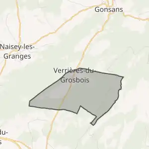 - Розташування муніципалітету Верр'єр-дю-Гробуа на мапі Франції та сусідні муніципалітети